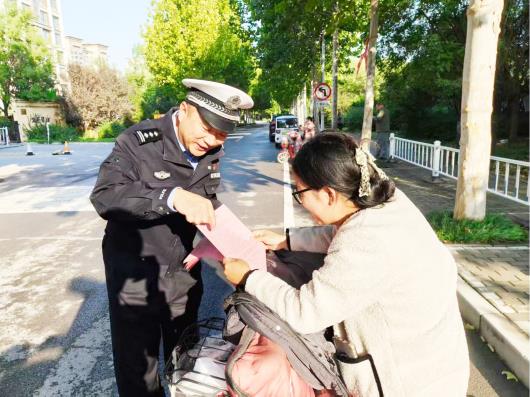 淄博交警对电动自行车驾驶人进行普法宣传教育。 张长链 摄
