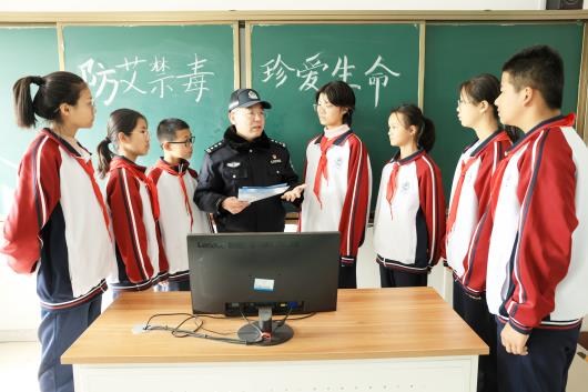 11月28日,济南市公安局市中分局白马山派出所民警来到济南育才中学,对学生开展禁毒宣传教育,增强孩子们识毒、防毒、拒毒的意识,助力健康快乐成长。