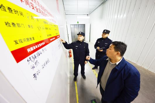 12月15日,曹县公安局磐石派出所民辅警深入辖区企业开展安全生产排查活动,发现问题及时消除安全隐患,主动为企业排忧解难,提醒企业确保安全生产,为企业创造良好的生产环境。图为民辅警在辖区一企业进行安全检查。