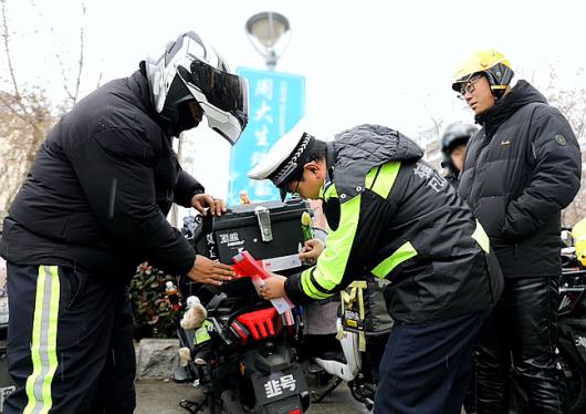 费县交警无偿捐赠高品质反光贴1万余套,通过做实做细安全通行“小细节”,推进“亮尾”行动,提高快递、外卖“两员”车辆轮廓在夜间的辨识度,进一步消除外卖员出行交通安全隐患。 吴云富 摄