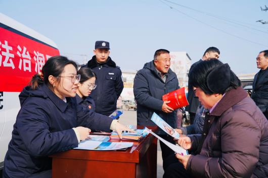 近日,曹县人民法院普连集法庭的干警变身“摊主”,在熙熙攘攘的集市中支起“法律摊位”。他们通过发放反诈宣传手册、悬挂宣传横幅等形式,向赶集群众普及反诈知识,耐心解答群众关心的婚姻家庭、邻里纠纷、土地流转、农民工维权、防范电信诈骗等热点问题,让法治知识随着年货一起走进千家万户,用接地气的方式把法律知识装进百姓的“菜篮子”。