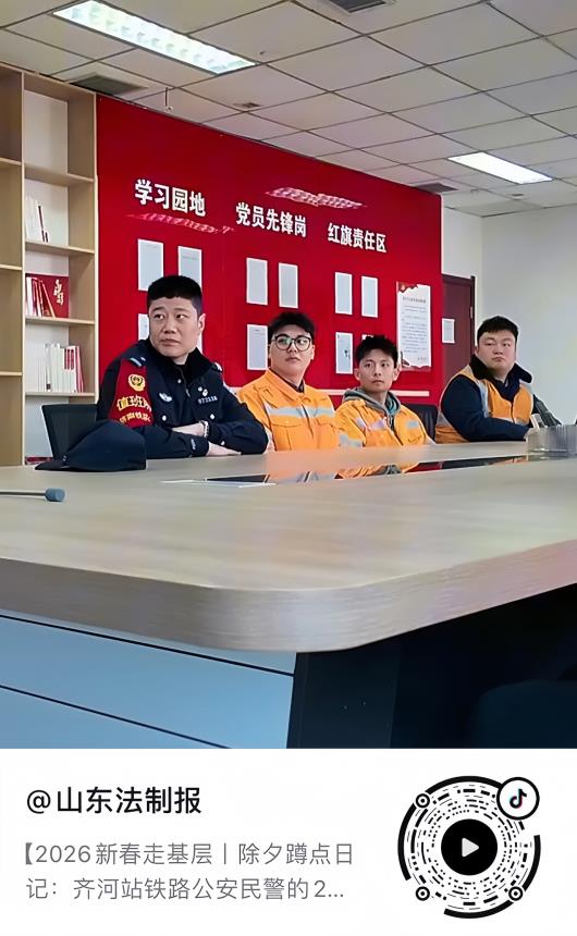 齐河站派出所隶属济南铁路公安局济南公安处,主要负责齐河站及京沪高铁、石济客专108公里线路的治安秩序维护工作。2月16日,除夕,派出所7名干警舍小家为大家,坚守岗位。他们巡火车站、巡铁路线、进企业做反诈宣传、进乡村普防火知识,联合齐河县交通局维护站周秩序、守好旅客归家的“最后一公里”,站好除夕夜的最后一班岗。团结、紧张、严肃、活泼,终夜不眠、守护人民,在自己的岗位上迎接春节,为旅客平安团圆“站岗”。