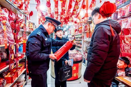 2月12日晚,枣庄市公安局市中分局解放路派出所民警深入辖区沿街商户开展消防安全检查。民警重点排查了用火用电安全隐患,并现场演示消防设施使用、发放反电诈宣传单,通过“检查+宣讲”切实守护群众生命财产安全。