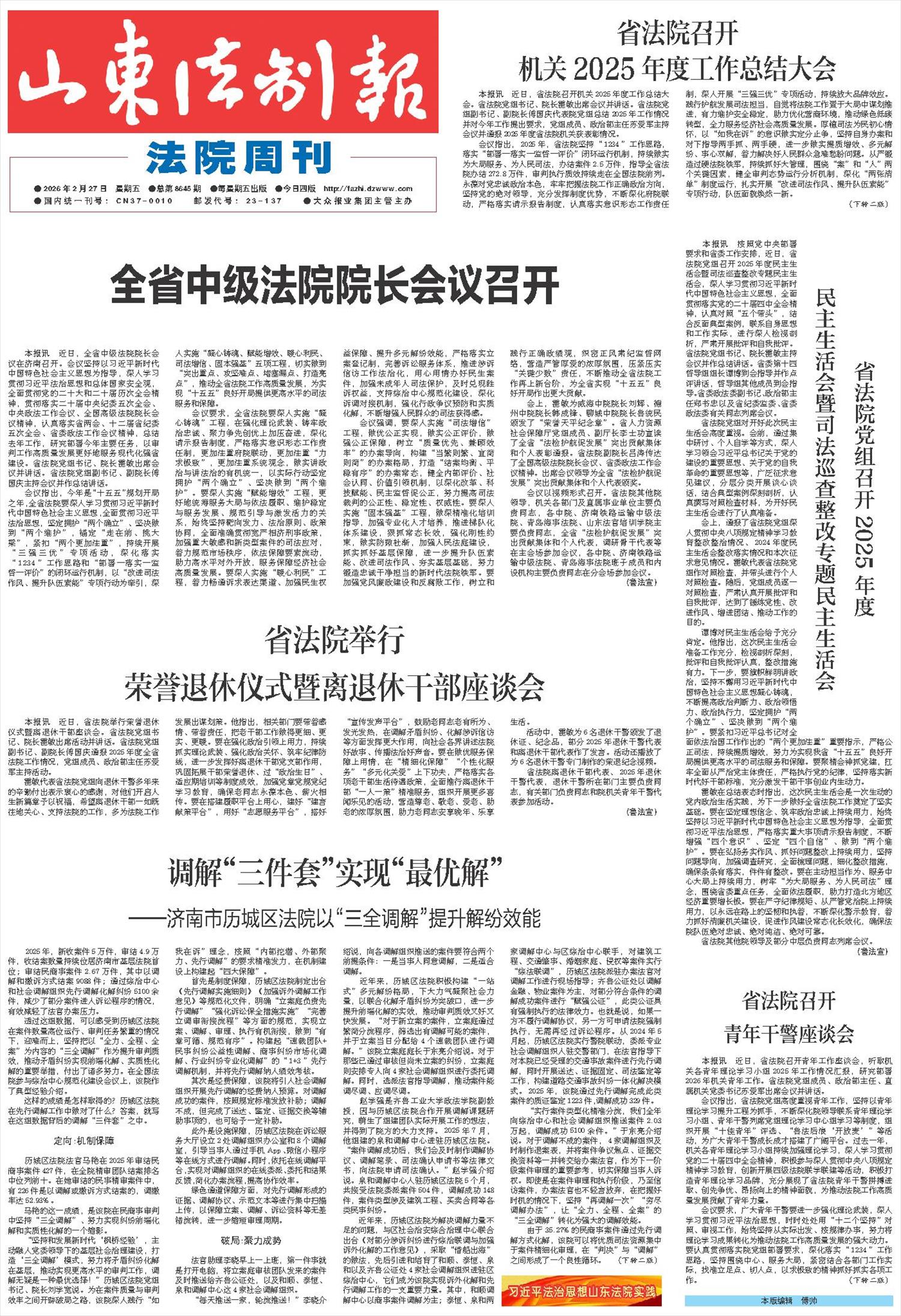省法院召开机关2025年度工作总结大会