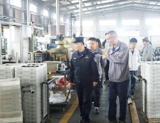 上图:莒县公安局组织民辅警进企业开展安全隐患排查。 宋浩 摄