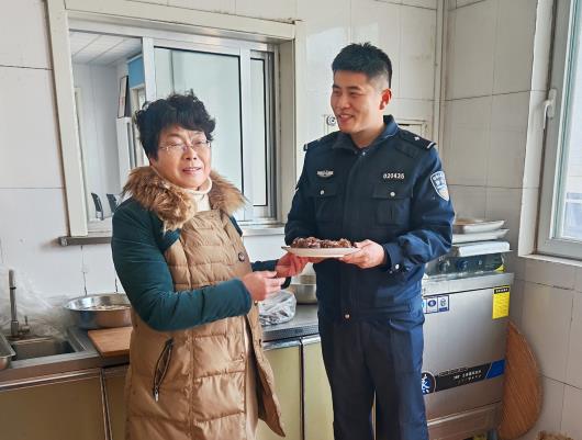 “满满一桌菜,特别丰盛,我们也带来了三道安徽老家的特色菜。”老苏回忆,席间大家有说有笑,所长和民警们轮番以茶代酒互致问候,淳朴厚道的待客盛情和礼遇,令老苏夫妇备受感动。除夕当天下午,老苏的爱人还主动和食堂工作人员一起包饺子,剁馅声、欢笑声交织在一起。