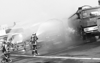 “高速路政吗?我开的液化气槽车在207高速路济南方向35公里处发生事故,液化气泄漏起火,后方多车相撞,快来救人啊!”(上图)接到报警电话后,山东高速监控调度中心立即联系路政和交警巡逻车辆、人员,封闭事故路段,开辟救援通道,并向济南市119指挥中心请求增援。